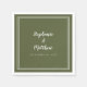 En enkel, minimalistisk och chic Bröllop-napkin har en modern design med en dubbla som ramas in gräns i skarp vit på ett trendig oliv grönt. Denna moderna enkla design ger tidlös, klassisk sofistikering. Anpassa namn med par och händelsemedatum i elegantens vita bokstäver och skript. Det här är en perfekt som medföljer vilken bröllopsfest som helst! Se till att samlingslänken på den här sidan visas om du vill visa alla matchande objekt! Skicka frågor eller anpassningsbar till invitationsuites@gmail.com.