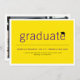Ett modernt, minimalistiskt studenten-meddelande med bildskärmskort med enkel fet typografi med ett pantbord/studentmössa på en platt gult färg-bakgrund lagrar som kan vara personlig och som kan ändras till valfri anpassningsbar färg. Det går att ta bort bakfotona om du vill lägga till en egen anpassningsbar. Designad av tjock*fa*tin. Enkel att anpassa med egen text, bild eller bild. Kontakta tjock*fa*tin direkt om du vill ha anpassningsbar. Avgifter för anpassningsbar gäller. www.zazzle.com/collections/graduation_invitations-119988321070623801 www.zazzle.com/collections/graduation_thank_you-119015369615228414 www.zazzle.com/fat_fa_tin www.zazzle.com/color_therapy www.zazzle.com/fatfatin_blue_knot www.zazzle.com/fatfatin_red_knot www.zazzle.com/fatfatin_mini_me www.zazzle.com/fatfatin_box www.zazzle.com/fatfatin_design www.zazzle.com/fatfatin_ink.