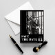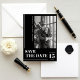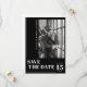 Gör ett djärvt statement med det här moderna minimalistiska kortet för att spara datumet. Med en slående svart bakgrund och fet vit typografi utstrålar kortet sofistikation och elegans. Den snygga layouten inkluderar vertikal text för parets namn och en stilren fotofram för att visa upp er favoritbild från förlovningen. Perfekt för par som söker ett samtida och tidlöst tillkännagivande, sätter denna design tonen för en chic firande. Fullt anpassningsbart för att återspegla era unika detaljer, vilket säkerställer ett personligt och oförglömligt save the date.