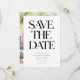 Vänner och familj i inbjudan för att spara datumet för bröllop med denna moderna utformning.