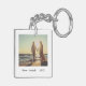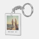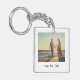 Unik och roligt sparar datumnyckelkedjorna som immuskar utseendet på ett retroomedelbart foto med ett handskriftsteckensnitt med ord, "Spara datum" på ena sidan och namn och datum på den andra. Kvadratiskt bild har ett filter över det till ge och det ser ut som en åldras (filtret kan ändras eller tas bort genom att klicka på anpassningsknappen). Denna coola och moderna utformning är perfekt för det minimalistiska par som har avslappnaden bröllop.