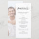 Enkel modern minimalistisk bröllopsmeny med ditt favoritfoto på baksidan. Klassisk och script med sammanlänkande hjärtatypografi.