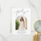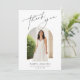 Dela din tacksamhet med stil med detta eleganta tvåsidiga tackkort för examen. Framsidan har en ren och modern layout med ett stort, handskrivet "tack" tillsammans med ett foto av din examen och personliga detaljer för en vacker och polerad presentation. Baksidan fortsätter den raffinerade estetiken med en mjuk genomskinlig överdrag och ett hjärtligt meddelande, vilket skapar ett varmt och meningsfullt sätt att tacka vänner och familj för deras stöd. Perfekt att skicka efter ceremonier, fester eller öppna hus, denna design blandar enkelhet och sofistikation för ett minnesvärt uttryck för uppskattning.