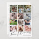 Skicka din anpassningsbar Jul önskemål till din familj och dina vänner och visa dina favoritstunder från i år! Och ta med "fred" till dina kära i Julhelgen! Denna moderna minimalistiska julklapp med flera fotosamlingskort har ett kollage med tolv kvadratfoton och en blandning av moderna vismskript och modern enkel typografi. Under, i elegant, skrivs skriptbokstäver "Fredlig". Här är din anpassningsbar Julhälsningar, din familj namn och året. Korten går tillbaka till ett hjärtligt budskap som kröns med ett litet hjärta. Klicka på "Anpassa den här mallen" om du vill redigera texten och ladda upp egna foton. Om du vill ha mer avancerade ändringar rullor du bara "Klicka för att anpassa ytterligare" och användor Zazzle-designen verktyg. Det här kortet kommer att vara en favoritkivsaké för kom i åratal! Bläddra bland samlingarna ovan eller besök min butik för att få fler vackra helgdag-fotokort! Jag önskar er ett mycket god jul och det bästa för det nya året!