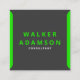 Gör ett kraftfullt intryck med dessa moderna, minimalistiska fyrkantiga visitkort. Den eleganta kombinationen av djupt matt svart och en livfull touch av grönt skapar en sofistikerad och samtida look som är både professionell och minnesvärd. Den unika fyrkantiga formen skiljer dig från traditionella kort, medan den rena designen säkerställer att all din viktig information är tydlig och lätt att läsa. Perfekt för alla professionella som vill förmedla en bild av modern innovation och stil. Lämna ett bestående intryck som är lika djärvt och unikt som ditt varumärke.