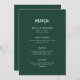 Den här eleganten har ett minimalistiskt bröllop-menykort modern skripttypografi och ren, sans serif-text för en enkel grönt och vit design som du kommer att använda för snyggt och kärlek.