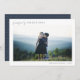 En elegant, minimalistisk julfotokortsdesign med ett enda vågrät med ett tjockt vitt gräns. "Säsongshälsningar" visas överst lämnat i en blandning av moderna handskrivna skript och underskattad klassisk serif-typ, med namn och året under i högerna grund.