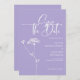 Modern minimalistisk och enkel design. Modern blandning av enkel, handskriven typografi i vit, vacker lavender färg av bakgrunden och tillägg till den subtle blommigt touch - white sketch of Queen Anne Snöre. Du kan anpassa texten, teckensnittet stil, färg och storleka för detta inbjudningskort. Matcha tillgängliga artiklar i samlingen