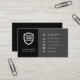 En enkel affärsmall för anpassningsbar i ett modernt minimalistiskt stil på en ren svart bakgrund med en halvgenomskinlig mjuk grått-panel. Den mångsidiga mallen kan enkelt uppdateras med företagets logotyp-, bild- eller fotoanvändarnamn, namn, rubrik, adress, mobila användarnamn, mobilnamn, e-postadress och social (för Instagram och Facebook).