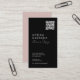 Elegant, modernt affärskort med din Logotyp och QR-kod som visas på en framträdande plats på det nedsänkta pastellprogrammet färg vid sidan av din kontaktinformation, inklusive social medieferthandtag i ett snyggt-skript och tidlös typografisk design. Detta är den och svarta versionen.