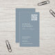 Elegant, modernt affärskort med din Logotyp och QR-kod som visas på en framträdande plats på det nedsänkta pastellprogrammet färg vid sidan av din kontaktinformation, inklusive social medieferthandtag i ett snyggt-skript och tidlös typografisk design. Det här är den dammiga blå versionen.
