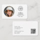 Impress med affärskortet snyggt och professionell. Den här dubbla-sidmallen innehåller ditt foto i en cirkel och är personlig med namn, logotyp, kontaktinformation och skannerbar QR-kod. Anpassa texten så att den passar ditt varumärke. Denna moderna utformning skulle ge kostym många olika yrken, bland annat mode-stilister, skönhetskonsulter, fotografer, boutikägare, makeup-konstnärer, inflytelseriker med mera! Tryckt färg: svart och vitt.