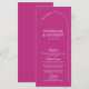 Den moderna minimala Magenta med välkomstmeny för bröllop förkroppsligar en ren och samtida designgestaltning. Dess grund är en slående magenta bakgrund, som fungerar som en djärv duk. Användningen av vit text på denna livfulla bakgrund säkerställer läsbarhet och lägger till en elegant kontrast.