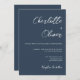 En sofistikerad bröllopsinbjudan med elegant calligraphy brev på marinblå bakgrund. Detta är en del av matchande bröllop-svit som du kan anpassa till fullo.