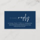 Det här är den moderna vackra minimalisten, OSA kort, i ett enkelt marinblått skript, för ditt bröllopsinbjudningssvar, eller party firande-kortet. Du kan ändra teckensnittet färg och lägga till webbplatsinformationen för bröllop genom att använda Zazzle-textredigering i verktyg. #TeeshaDerrick