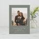 Meddela din speciella dag med elegans och enkelhet med detta minimalistiska "Spara datum"-kort med krävande vita sans-serif-teckensnitt mot en chic olivgrå bakgrund. Lägg till en av dina favoritbilder från förlovningen för att skapa ett unikt minne. Blanda och matcha med kompletterande delar för en sammanhängande inbjudan. Skapa tidlösa minnen med denna mångsidiga design. Beställ nu för en sofistikerad touch till dina bröllopsförberedelser!