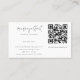 Modern minimalistisk Professionell Enkel svartvit Affärskort. Öka nätverken med det här minimala affärskortet för professionell med en elegant modern design. Kortet visar ett typsnitt i snyggten som parats med rena medieikoner i social och skapar det enkelt att markera din närvaro på onlinen. En skannerbar QR-kod ger ett sömlöst sätt att ansluta, och dirigerar klienter till din webbplats-, portfölj- eller social-medieprofiler. Perfekt för företagare, formgivare, bröllopsfixararna, kreativ och professioneller som värdesätter enkelhet och sofistikering i sin varumärkesmärkning. Affärskortet kan anpassas med ditt namn och adress, och du kan välja mellan olika typsnitt och storlekar för att skapa ett utseende som är unikt för dig. Den här typen av märkning är perfekt för både personlig använda och professionell. Kontakta truullc@gmail.com för matchande produkter..
