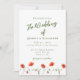 Modern och minimalistisk bröllopsinbjudan med platta blommigtar innehåller vattenfärgspopier grund gräns med anpassade (visas i grönt bläck, som kan ändras). Baksidan av inbjudan är en lätt eukalyptus grönt som också kan ändras till valfritt färg. Finns i både utskrifts- och digitalhämtningsformat.