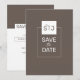 Meddela din bröllopstid med sofistikerad stil med detta moderna minimalistiska "Spara datum"-kort. Med neutrala jordtonade bakgrunder, samtida typografi och anpassningsbara initialer är denna inbjudan perfekt för par som älskar rena linjer och varma, naturliga färgpaletter.
