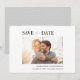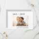 Meddela ditt kommande bröllop med det här enkla och rena datumkortet. Utformningen innehåller ett vågrät foto ram på framsidan med accenttecken för anpassningsbar för namn, datum och plats för bröllop. På baksidan finns anpassningsbar för mer information om webbplatsen bröllop och bröllop.