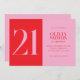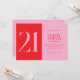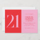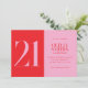 Modern minimalistisk inbjudan på 21:a födelsedag med enkel design med typografi av elegantens chic i rosa och röd färg.