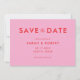 Moderna minimalistiska bröllop spara datum-kort med enkel design, elegant stil-kalligrafi i rosa och röd färg.