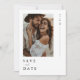 Omfamna elegansen på din speciella dag med vår Svart & Vit Kalligrafi Foto Spara Datumet. Perfekt för ett modernt bröllop, kombinerar detta kort minimalistisk design med en personlig touch och visar ditt favoritfoto. Idealiskt för strand- eller destinationbröllop, dess tidlösa stil och sofistikerade kalligrafi fångar kärlekshistoriens väsen och säkerställer att dina gäster sparar datumet med glädje.