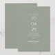 En modern minimalistisk spara-datum-kort med ditt speciella datum och bröllopsdetaljer i klassisk, chic typografi på en salonggrön bakgrund. Designad av Thisisnotme