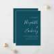 Det här enkla, moderna bröllop spara datum-kortet har vit text i snyggt handskriftsalternativ och sans serif-teckensnitt, justerat med högerna mot en helblå bakgrund. Kortets baksida är en solid teal.