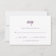 Dessa elegant, minimalistiska bröllop-svarskort har vit, modern skripttypografi och ren, sans serif-text för en enkel och snyggt kassis lila design som du kommer att kärlek.