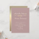 Elegant, minimalistisk, modern dammig bröllopsinbjudan till ro med guld foils rephjärta och enkelt manus.