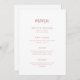 Den här eleganten har ett minimalistiskt bröllop-menykort dammig ro, modern skripttypografi och ren, sans serif-text för en enkel och snyggt design som du kommer att använda i kärlek.