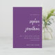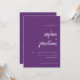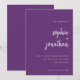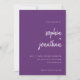 Den här eleganten, de minimalistiska bröllopsinbjudningarna har vit modern skripttypografi och ren, sans serif-text för en enkel och snyggt färgstark lila som du ska kärlek.