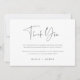 Moderna minimalistiska tackkort för ditt bröllop, förlovning, brudshowers eller baby shower med "tack" i mjuk svart modern handskriven typsnittsbokstäver, med din anpassade text och signatur nedan. Lägg till ett foto på baksidan. Denna enkla minimalistiska design i klassisk svart och vit passar perfekt för alla tillfällen.