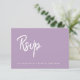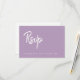 Dessa elegant, minimalistiska bröllop-svarskort har modern skripttypografi och ren, sans serif-text för en enkel och snyggt lavender lätt lila och vit design som du ska kärlek.