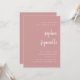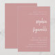 Den här eleganten, det minimalistiska inbjudningskort för möhippa har modern skripttypografi och ren, sans serif-text för en enkel och snyggt dammig rosa och vit design i ro som du kommer att kärlek.