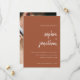 De här eleganterna, de minimalistiska bröllop spara datum-korten har vit, modern skripttypografi och ren, sans serif-text på en boho terracotta-bakgrund, med ditt favoritfoto på baksidan.