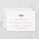 Dessa elegant, minimalistiska bröllop-svarskort har en modern burgundisk skripttypografi och ren, sans serif-text för en enkel och snyggt design som du kommer att använda i kärlek.