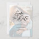 Temapartyets moderna Spara datumkortsdesignen har ett skrivtypografiskt överlägg och minimalistisk text för namn och bröllop. Typografin läggs över på ditt favoritfoto på förlovningen som upprepas på motsatt sida i fullt färg. #SavetheDate #ModernWedding #SaveTheDate #InstantDownload