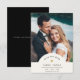 Det här enkla fotot Rädda datum-kortet för din bröllopsfest strålar av enkelhet. Modern skrivmaskinstypografi, accentuerad med ett diskret hjärta i (tryckt) guld, inramar ditt favoritfoto och gör denna bröllopspapperation både minimalistisk och ändå så elegant. På baksidan finns utrymme för ytterligare information såsom webbadress till bröllopswebbplats. Det här är versionen med svart formell bakgrund (du kan anpassa färgen på baksidan genom att klicka på "anpassa ytterligare").