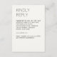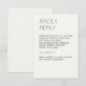Ett minimalistiskt responskort för bröllop OSA som är designat för att samordna med vår "moderna minimalistiska fotosamling" bröllop. Med skarp, ren, minimalistisk typografi med feta, överdimensionerade huvuden skapar varje biet en slående men underskattad estetik. Enkel, ren och skarp sammansättning finns i ett kursiverat urval av contemporaryns bakgrund färg. Blanda och matcha färg med andra kontorsprodukter för att skapa perfekt bröllop-kontorssvit. Den här kortuppsättningen för hölje är helt anpassade och enkel att anpassa och är perfekt för dem som värdesätter elegant design och enkel sofistikering för sin speciella dag. Kolla in resten av samlingen i vår butik. ✦ ✦ kontakta oss för att få hjälp med att anpassa eller anpassa sig till din önskemål. Eller för att hjälpa till att anpassa eller skapa relaterade bröllop-kontorsprodukter.