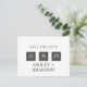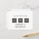 En enkel modern design för ett enkelt modernt par. Fyll bara i lådorna/namn/returadress/mål för bröllop och du är redo att skicka dessa enkla SPARA DATE-vykort till familj och vänner!