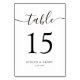 Det här bordsnumret har ett slimmat svart skript på en skarp vit bakgrund som ger en modern minimalistisk design. Perfekt för att tillföra lite elegans till din bröllopsmottagning. Det här kortet är enkelt för anpassade. Matchande objekt är tillgängliga.