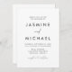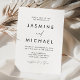 Enkelt, elegant bröllop-inbjudningar med ett svart, handskrivet skript blandat med modernt bokstäver mot en vit bakgrund. Anpassa den minimalistiska bröllopsinbjudan med ditt namn och uppgifter om bröllop. Chicens svartvita bröllopsinbjudningar är perfektens val för det moderna bröllop.