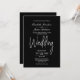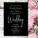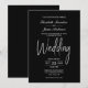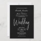 En elegant minimalistisk svart bröllopsinbjudan med vit text.