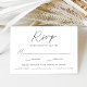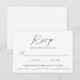 Enkelt, elegant bröllop OSA kort med ett svart, handskrivet skript blandat med modern text mot en vit bakgrund. Anpassa de minimalistiska bröllopen OSA med önskat svarsdatum, anpassningsbarna accepterar/avböjer formuleringar och måltider. Chicens svarta och vita bröllop OSA är perfektens val för det moderna bröllop.