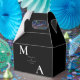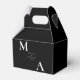 Moderna minimalistiska favoritboxar för svart och vitt bröllop. Har fet monogramtypografi och minimal grafisk design.