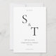 Modern bröllop spara datum-kort med minimalistisk monogramtypografi och svart och vitt färg. Anpassa texten med all information om din speciella dag.