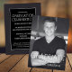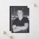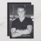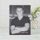 Modern minimalistisk svart och vit examensannonsering för högskola eller gymnasieskola enkel examensfest, öppen hus eller examensfirande. Anpassa texten och lägg till ditt vertikala examensfoto. Elegant och tidlös design är perfekt för gymnasie- eller högskoleexamen eller inbjudningar till fest. Plats för ett personligt meddelande från examenkandidaten finns på baksidan av inbjudan.