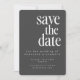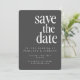 Det här moderna "Spara datum"-kortet har en minimalistisk grått-bakgrund av mörk med fet vit text och skapar ett slimmat och elegant för din speciella dag. Utformningen innehåller information om anpassadet, t.ex. namn, bröllop, plats och URL för mer information, skapar perfekt för par som uppskattar ren contemporary stil. Det här kortet är tillgängligt för hämtning eller utskrift och är idealiskt för dem som tittar att ange en sofistikerad ton för bröllop. Det är perfekt för par som vill göra ett enkelt men otrevligt första intryck med sitt bröllop-kontor.